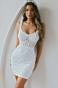We are head over heels for our Secret Crush dress. Featuring a floral lace overlay and adorable frill straps. Perfect for a bridal event or birthday celebration. Team it with tan mules for a super cute look we are loving.