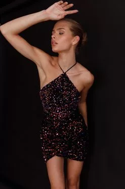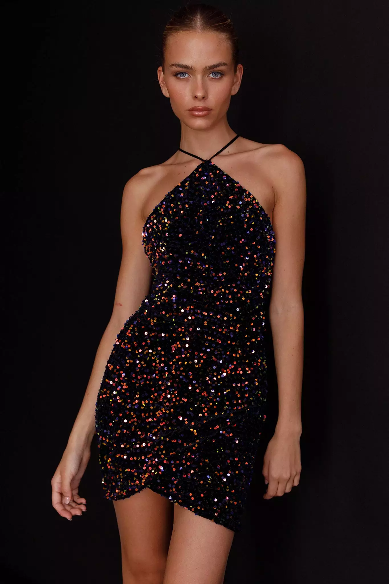 Selfie Leslie Serving Looks Criss-Cross Back Sequin Mini Dress Midnight Blue