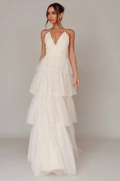 You’ll feel like a princess in our stunning Seylah maxi dress. We are in love with the glitter detail throughout and the gorgeous, tiered mesh frills. Perfect for a wedding or prom. Team it with nude heels and a satin clutch for a look that’s fit for royalty.
