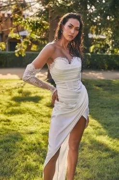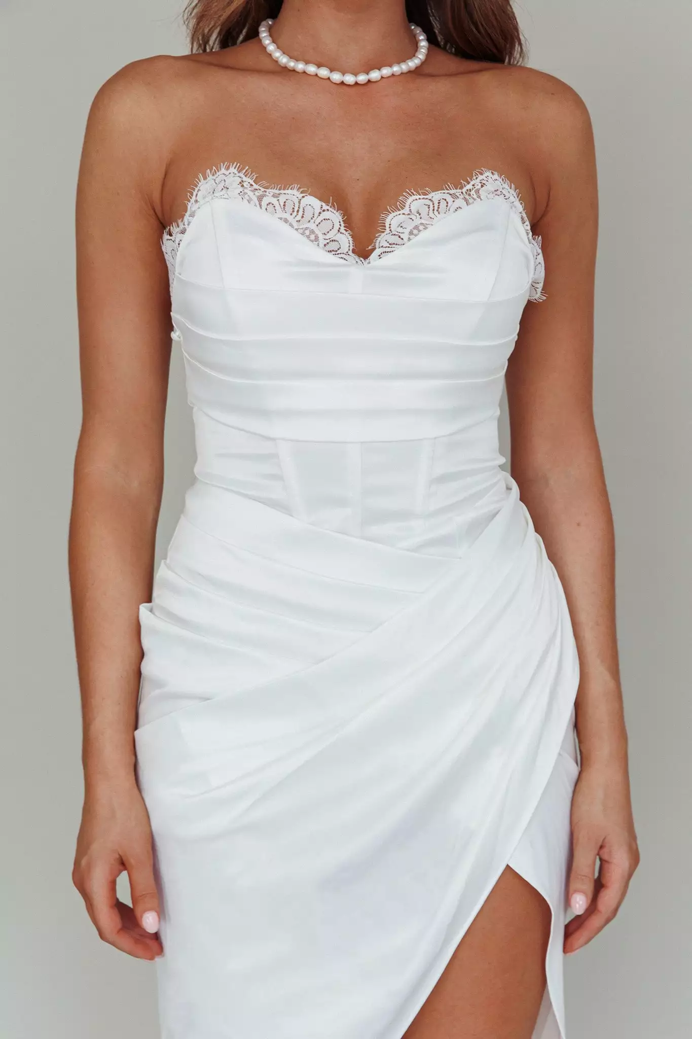 Selfie Leslie Shanice Lace Trim Sweetheart Midi Dress White