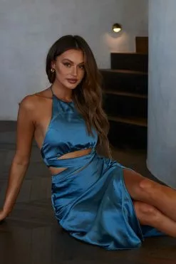 You’ll cause quite the commotion in our hot Social Butterfly midi dress. Featuring a cut-out waist and sexy thigh split. Perfect for a birthday celebration teamed with strappy tan heels and a small purse.