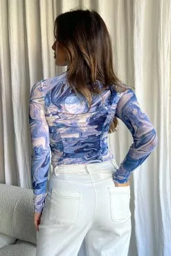 Selfie Leslie Soul Turtleneck Bodysuit Swirl Blue