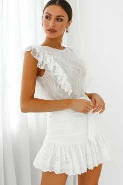 We’re all caught up on our dreamy Spring Fling bodysuit. Featuring a delicate lace overlay throughout, sleeveless style and adorable frill trim. Perfect for a flirty lunch date teamed with a chic skirt or blue jeans for a casual-cute look.