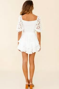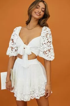 Your closet called… It needs this top! It’s not hard to see why, our Star Crossed Lover top is downright dreamy! We can’t get enough of the bust-tie feature and crochet lace sleeves! Perfect for a fun date or Beverly Hills brunching with your fave ladies. Team it with nude heels and its matching skirt. Super cute!