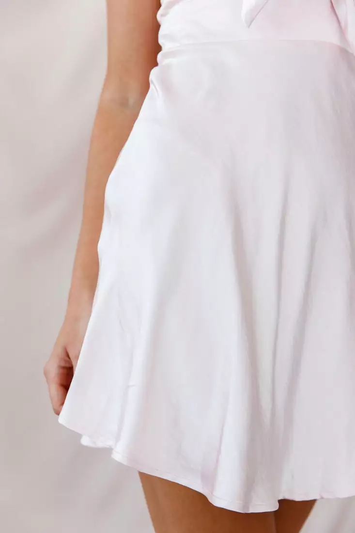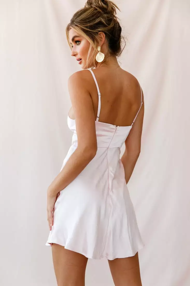 Make an entrance in our slinky Starry Night Dress. Perfect for when you’ve got someone to impress. Featuring soft, satin fabric throughout, a super cute fitted bust with a tie-knot feature, adjustable straps and zipper closure in the back. Team it with barely-there, single strap nude heels, delicate jewelry and a double coat of mascara for all that eyelid batting you’ll be doing!