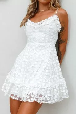Selfie Leslie Summer Daze Frill Bust Floral Embroidered Overlay Dress White