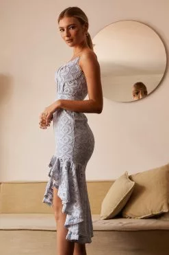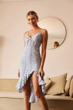 You’ll be the talk of the town in this gorgeous dress. We are obsessed with that crochet lace throughout, not to mention the super cute circle trim accent throughout the bodice and high-low hemline. Perfect for date night with bae teamed with tan mules and a tote.