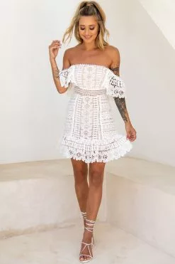 Cause a commotion in our gorgeous Tallulah dress. The off-shoulder trend is so hot right now and we are loving the pretty crochet throughout. Perfect for a day date with your new crush teamed with tousled locks, mules and a tote.