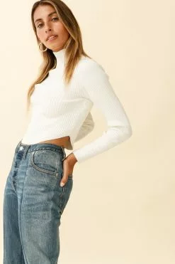 Hey there, cutie! We’re in love with our chic but sweet Tina turtleneck top. Perfect for a crisp Fall day at your fave outdoor mall. We are obsessed with its curved hem and ribbed knit. Team it with some cut-off shorts and ankle boots for a hot look we are loving.