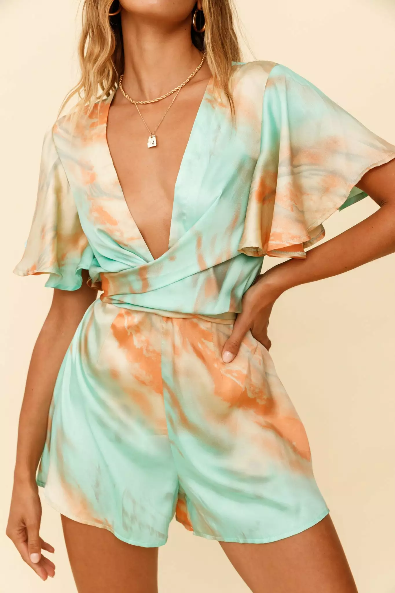 Make a statement in our gorgeous Unconditional romper. We are obsessed with its unique wrap style and that silky, marbled fabric is to die for! Perfect for a Summer weekend happy hour with your girls, watching the sunset and catching up on the latest goss. Team it with wedges and a tote for a hot look.