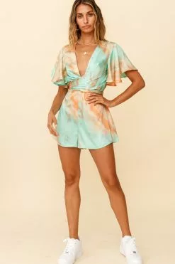 - Aqua/Orange marbled romper