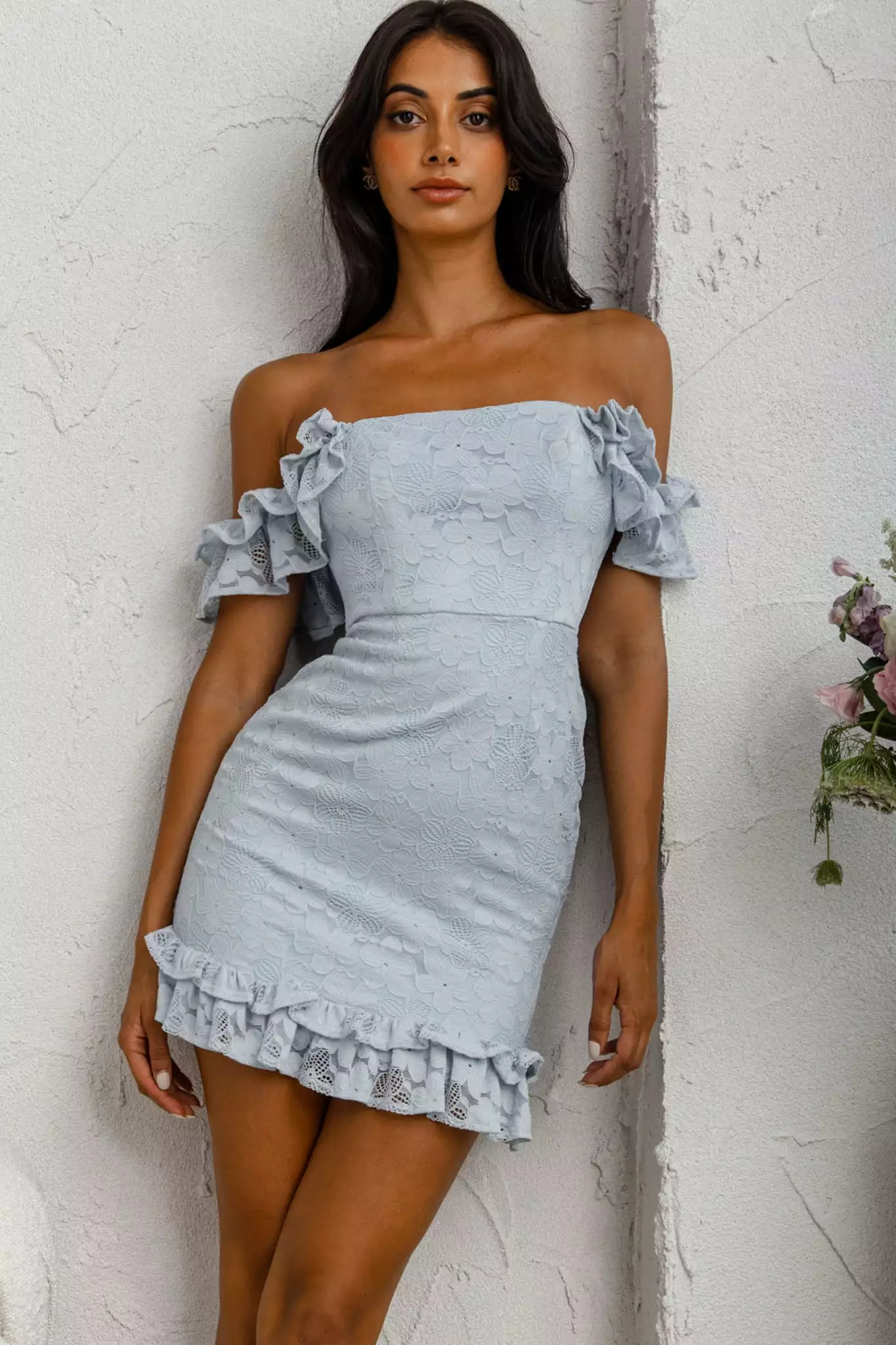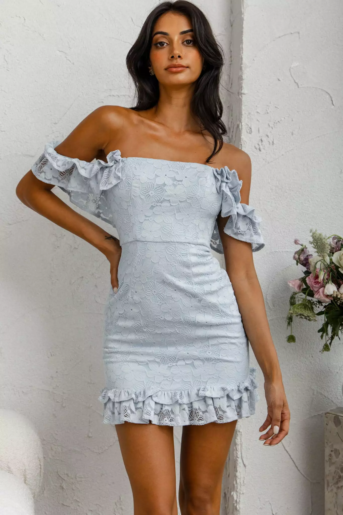 You’ll feel like you’ve been swept up in your own romance novel in our gorgeous Verona dress. Perfect for a wedding or birthday soiree, we are head over heels for its off-shoulder frill sleeves and stunning lace overlay. Team it with nude heels and a chic clutch for a look that is sure to turn heads.