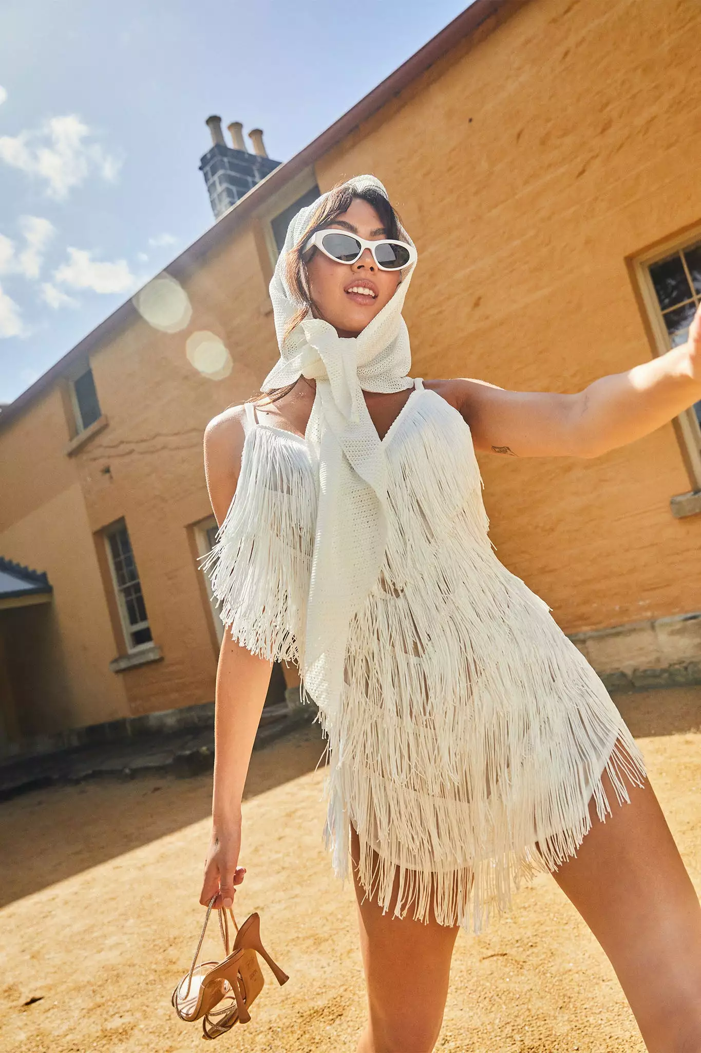 Turn heads in our stunning Vintage Charm mini dress. Featuring layered fringing throughout, it’s perfect for a bachelorette weekend! Team it with diamante heels and a cute updo for a fun look that won’t be forgotten.