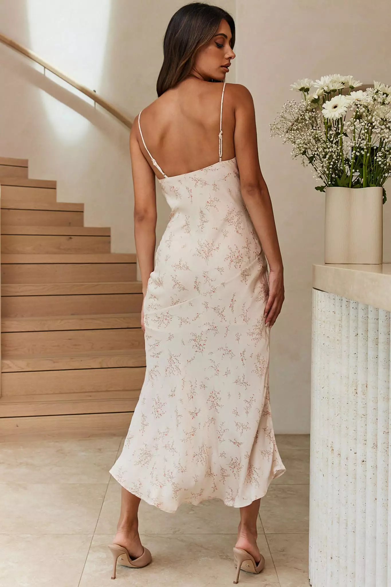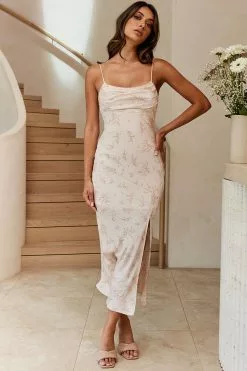 - Champagne floral print dress