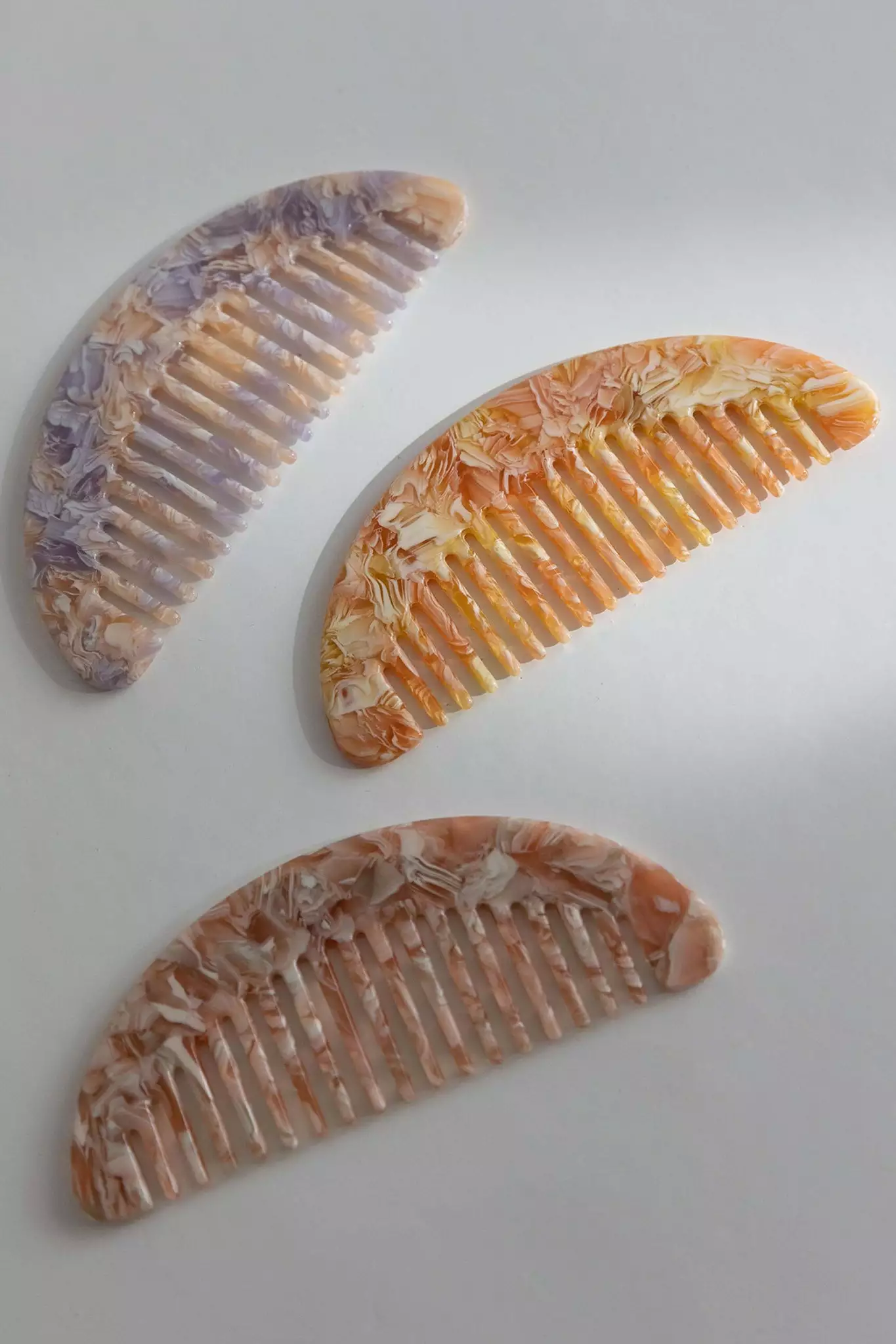 We’ve fallen head over heels for our pretty Jessie comb. Featuring wide, flat teeth and a polished, marble-look acetate, it will look super cute sitting on your vanity beside your fave jewels for the ultimate aesthetic!