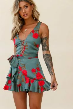 - Sage floral print romper