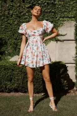 Selfie Leslie You’re So Magic Cut-Out Mini Dress Floral Peach
