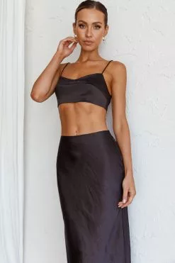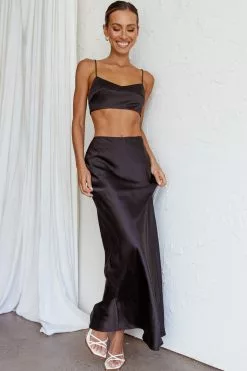 Jaws will drop when you strut by in our The Moment crop top. Featuring a soft, satin fabric and zipper in the back, it’s perfect for a girls’ night out or special occasion. Team it with its matching maxi skirt and clear mules for an unforgettable look.