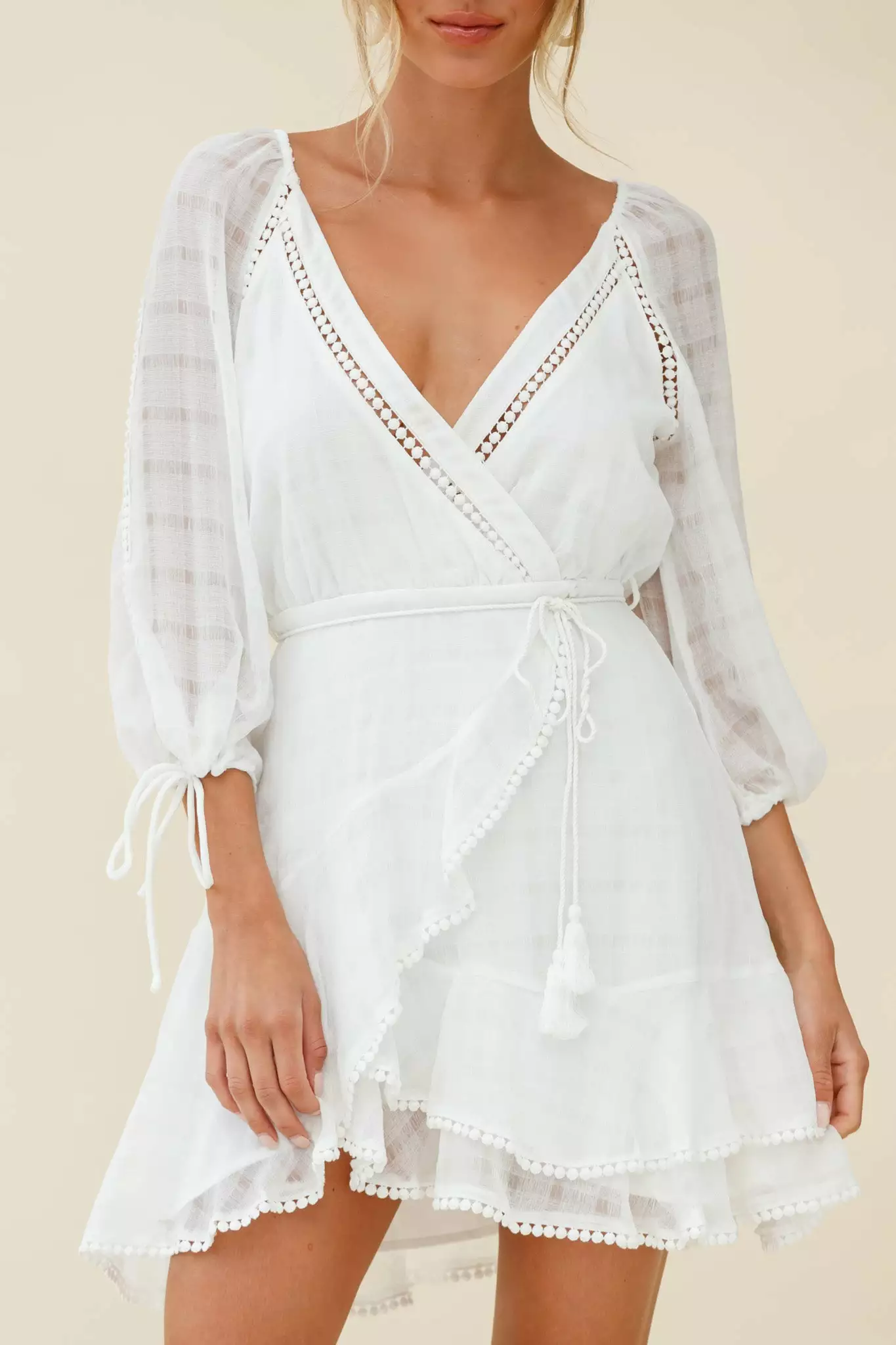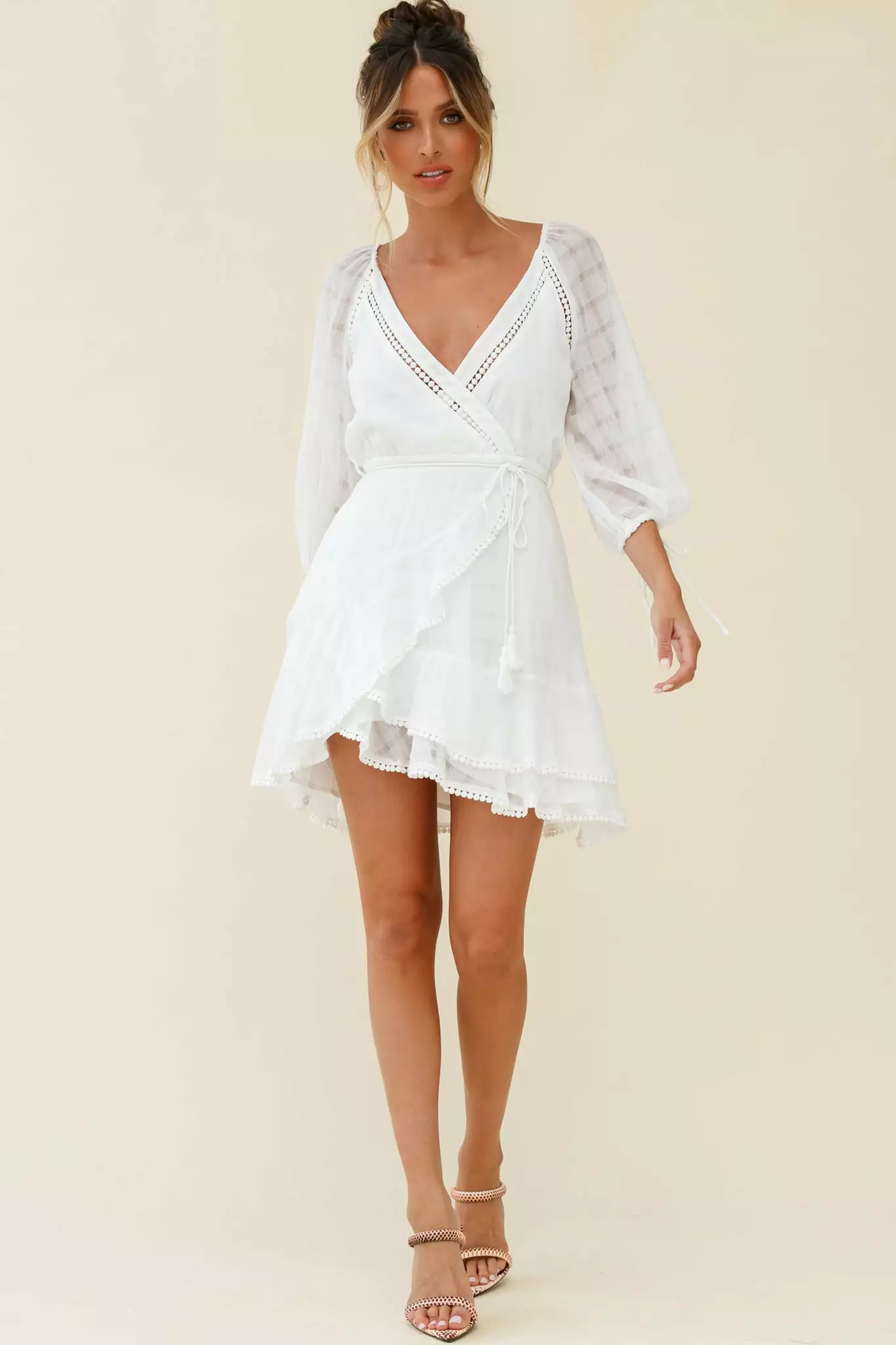 Channel your inner country girl in our super sweet Wilde dress. We are loving its sheer balloon sleeves and crochet trim details. Perfect for a bridal shower or special birthday occasion teamed with tan mules and a tousled updo.
