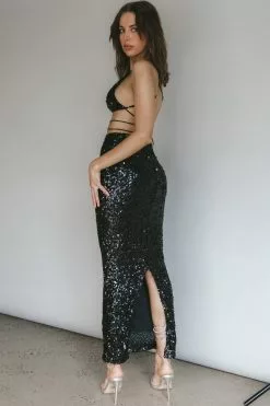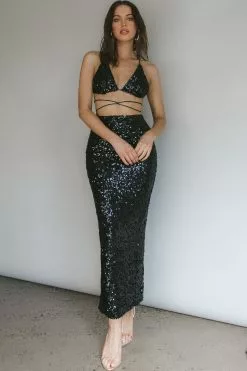 Steal the show in our stunning Zefa triangle top. We are obsessed with its sparkly sequin fabric, perfect for a glam girls’ night out! Team it with its matching skirt or jeans and a blazer for a look that’s sure to turn heads.