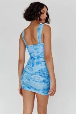 Angel Biba Daydreaming Ruched Mini Dress Floral Blue